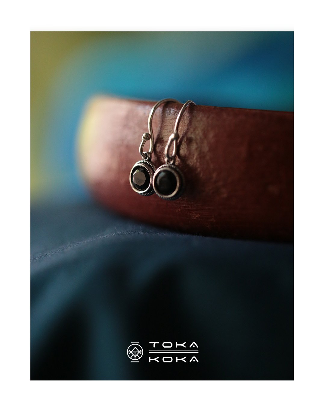Elegant handcrafted silver tone loop earrings with glass cut like gemstone. Perfect for everyday wear or gifting.