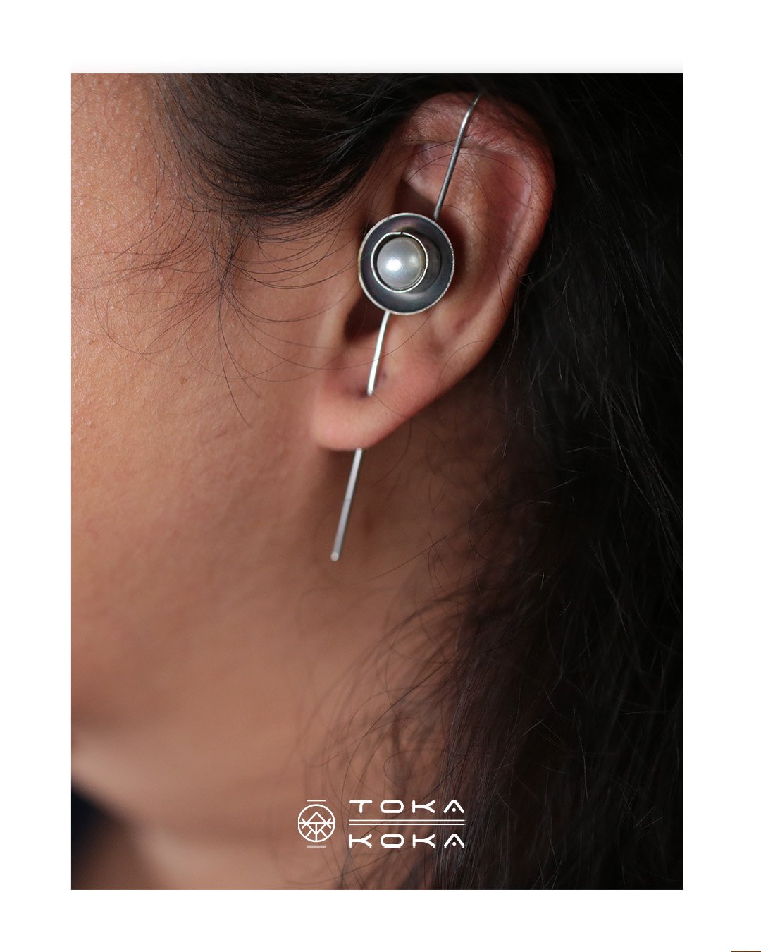 An ode to simplicity and stillness. A contemporary bugadi inspired by old-world elegance, a single pearl balanced in quiet poise. Light on the ear, timeless in spirit.