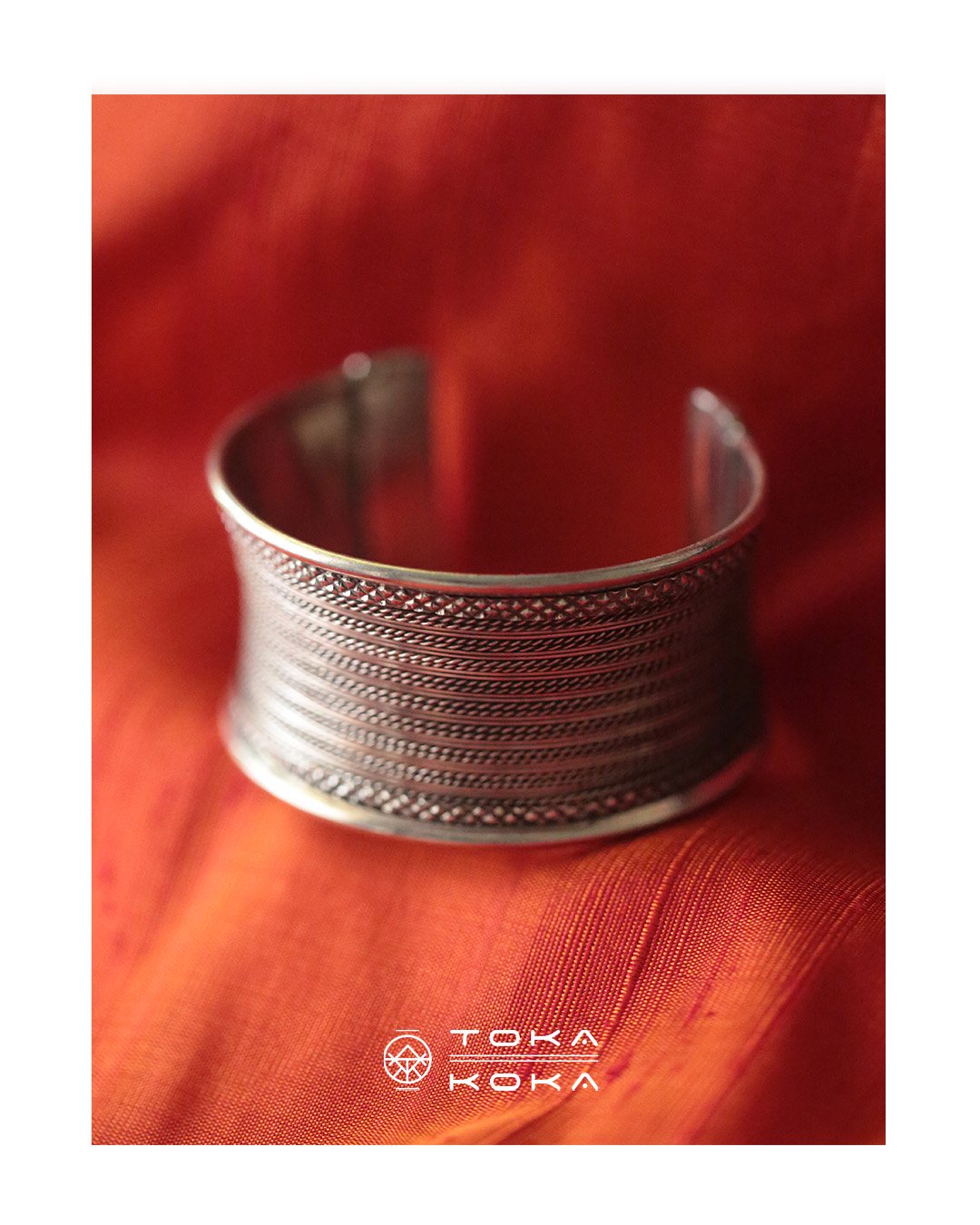 The Rekha Wrist-cuff is not loud. It doesn’t need to be. It sits, it grounds, it becomes you. Crafted in a silver lookalike finish for everyday ease, with the soul of something far older.